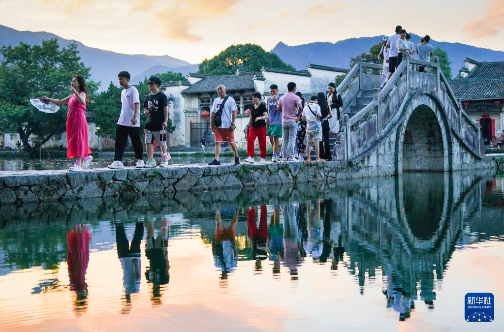 7月7日,游客在安徽省黄山市黟县宏村游玩。