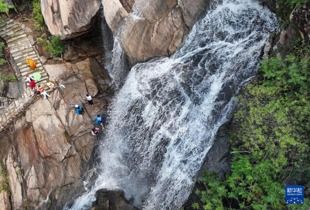 7月10日,游客在江苏省连云港市连云区宿城街道东崖屋村游玩(无人机照片)。
