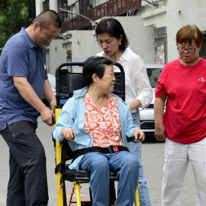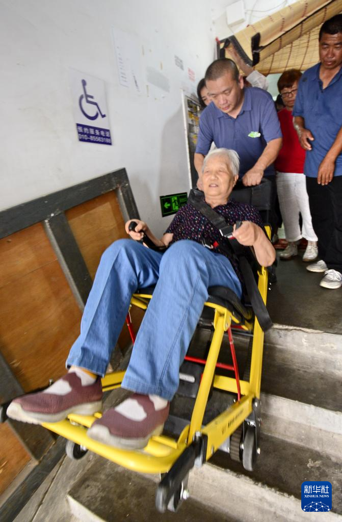 近日,北京市朝阳区青年路社区联合绿芽公益机构在辖区内的无电梯老旧楼房小区内配备“爬楼机”,以解决小区内高龄老年人、卧床病人出行等难题。