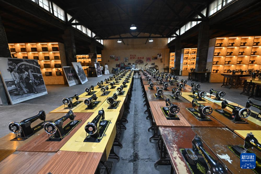 山西经纬Go Home艺术中心综合馆展出的缝纫机(7月10日摄)。