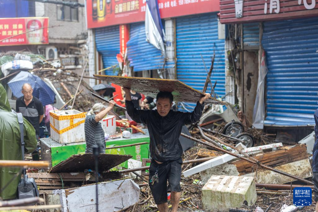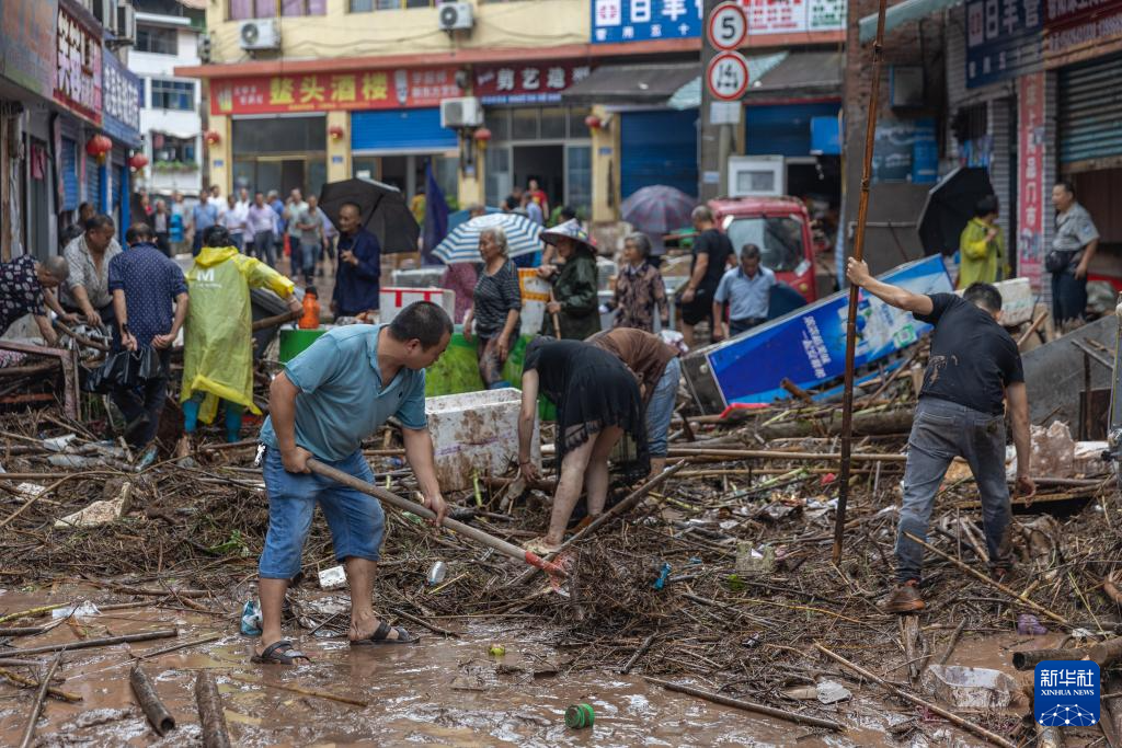 近日,重庆市忠县遭遇暴雨天气。洪水退去后,当地政府组织人员对受灾严重的三汇镇开展道路清淤、设施抢修和隐患排查等工作,有序恢复群众生产生活。