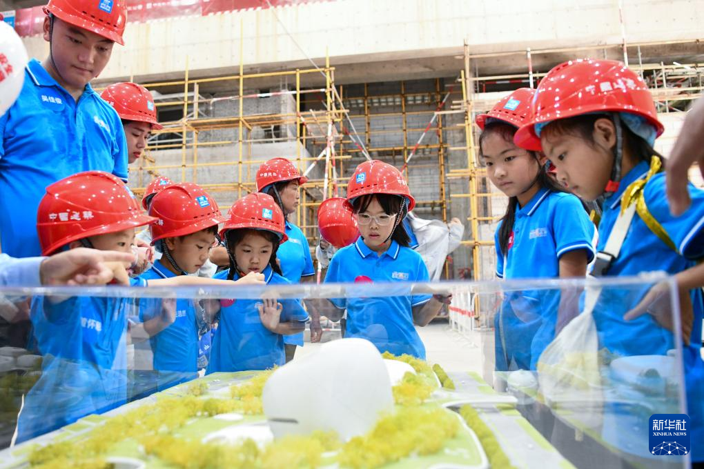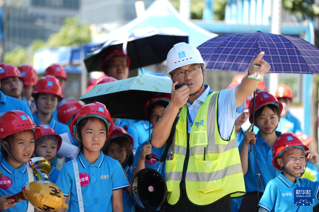 7月10日,参加夏令营的“小候鸟”家庭在深圳湾文化广场项目工地参观。