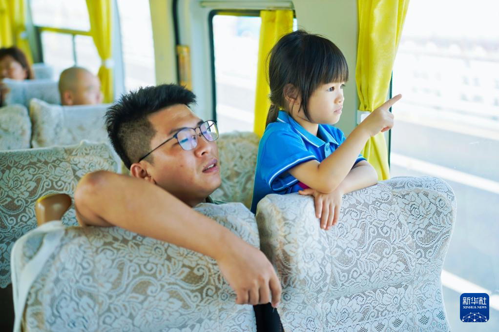 7月12日,参加夏令营的“小候鸟”和家长一起坐车“打卡”深中通道。