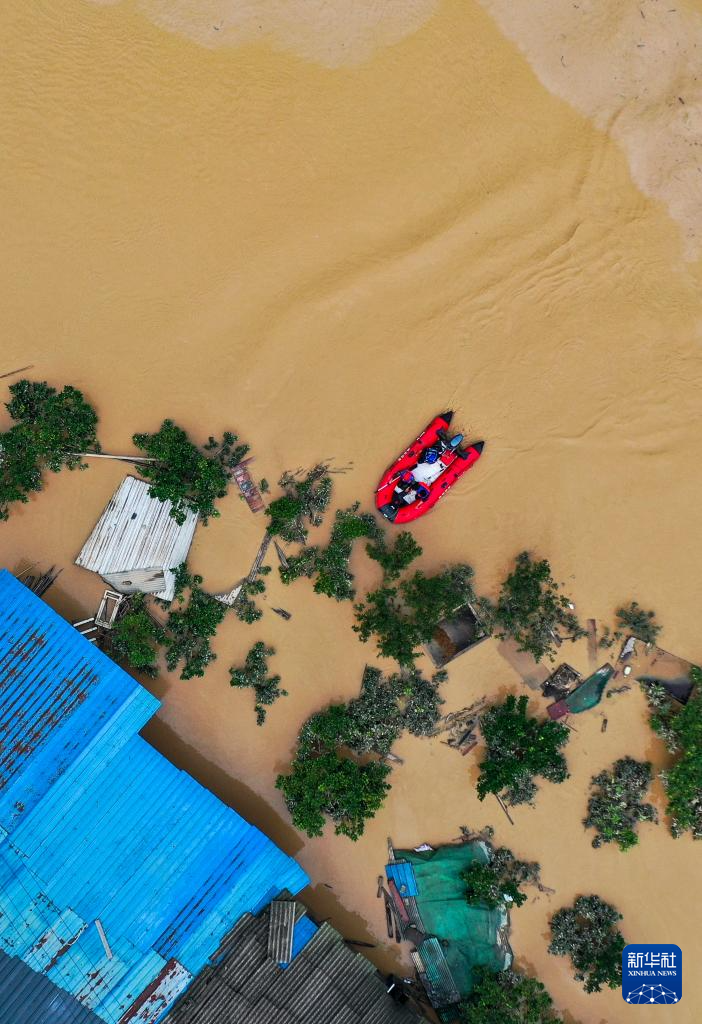 7月11日,救援人员在重庆市长寿区云台镇开展救援作业(无人机照片)。