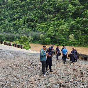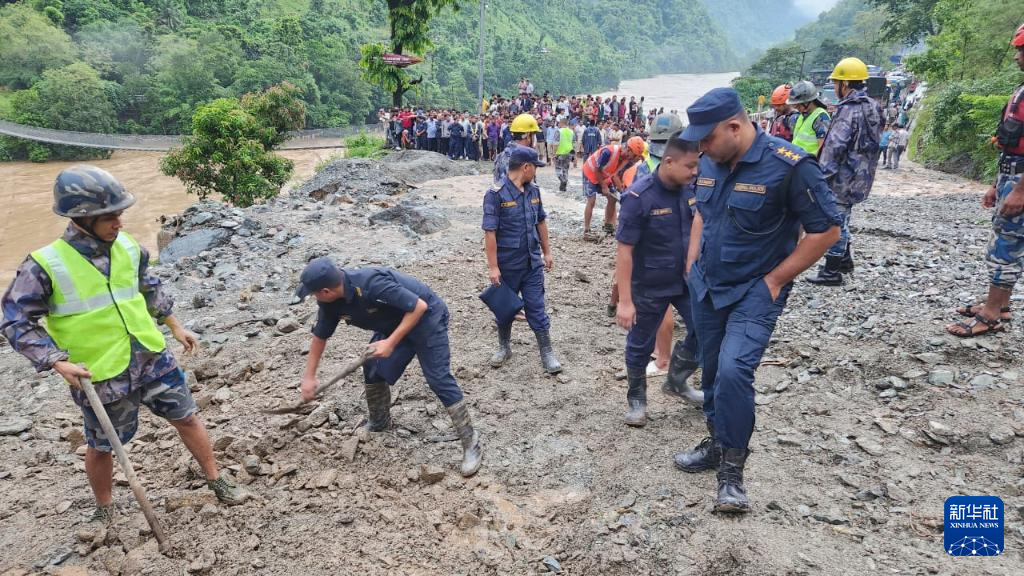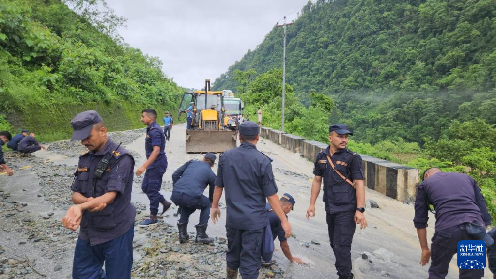 7月12日,警察在尼泊尔奇特旺县的山体滑坡现场参与救援。