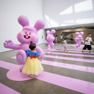 7月13日,小朋友在宁夏银川当代美术馆参观游玩。