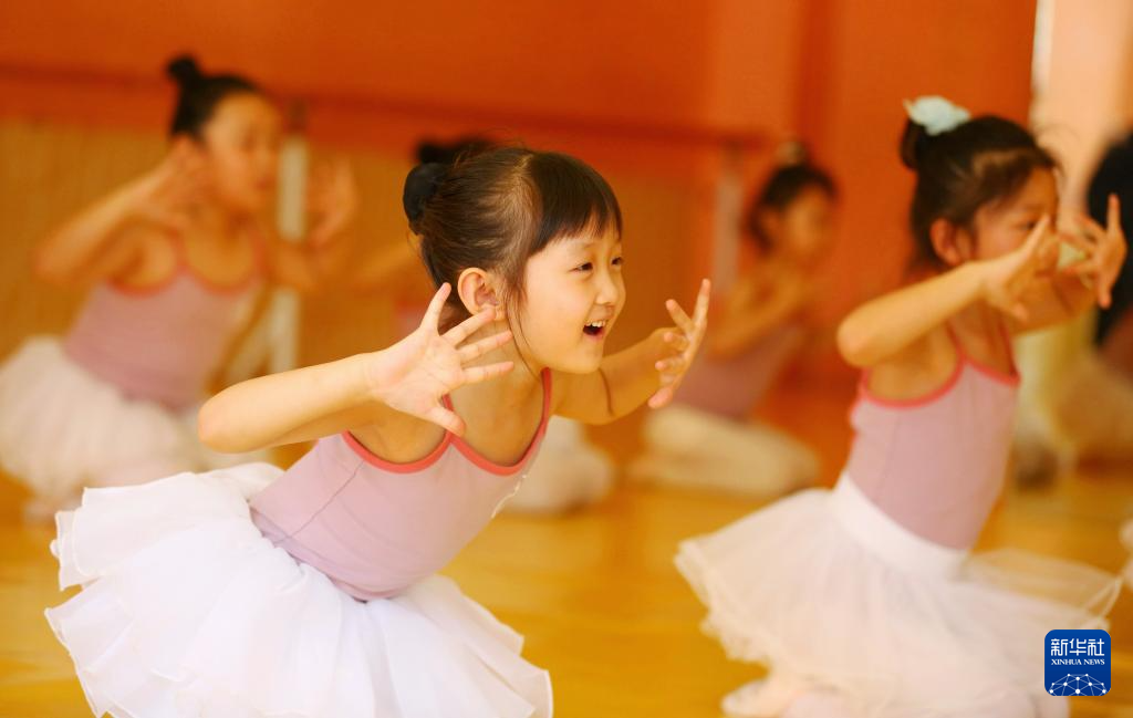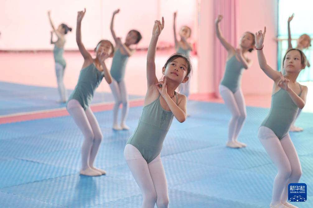 7月13日,在山东省临沂市沂南县铜井镇一家艺术培训中心,孩子们在学习舞蹈。