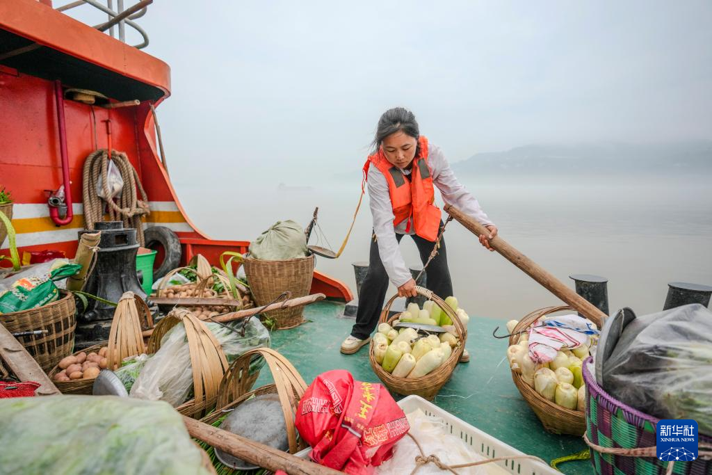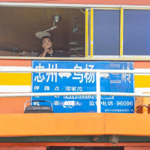 在重庆忠县洋渡到西山两个码头间至今开行着当地唯一的“水上公交”——“渝忠客2180”。每天6点半,这艘船都会准时出发,坐船的多是一些菜农,背着背篓、挑着扁担、乘船进城卖菜。45岁的船长秦大益开船送老人卖菜、下船帮老人搬运。