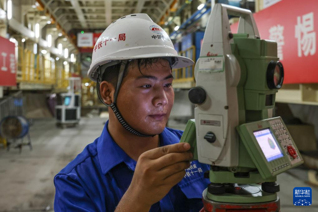 7月13日,施工人员在“鲲鹏号”盾构机内检查管片拼装精度。