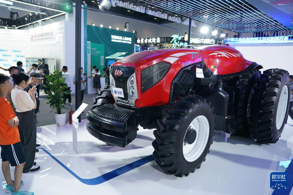 这是7月13日在北京科博会现场拍摄的一款无人驾驶拖拉机。