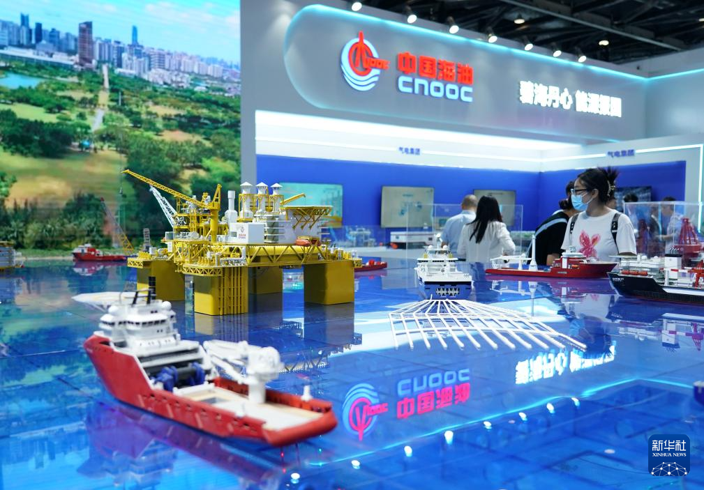 7月13日,参观者在北京科博会现场参观中国海油深水油气田勘探开发模型。