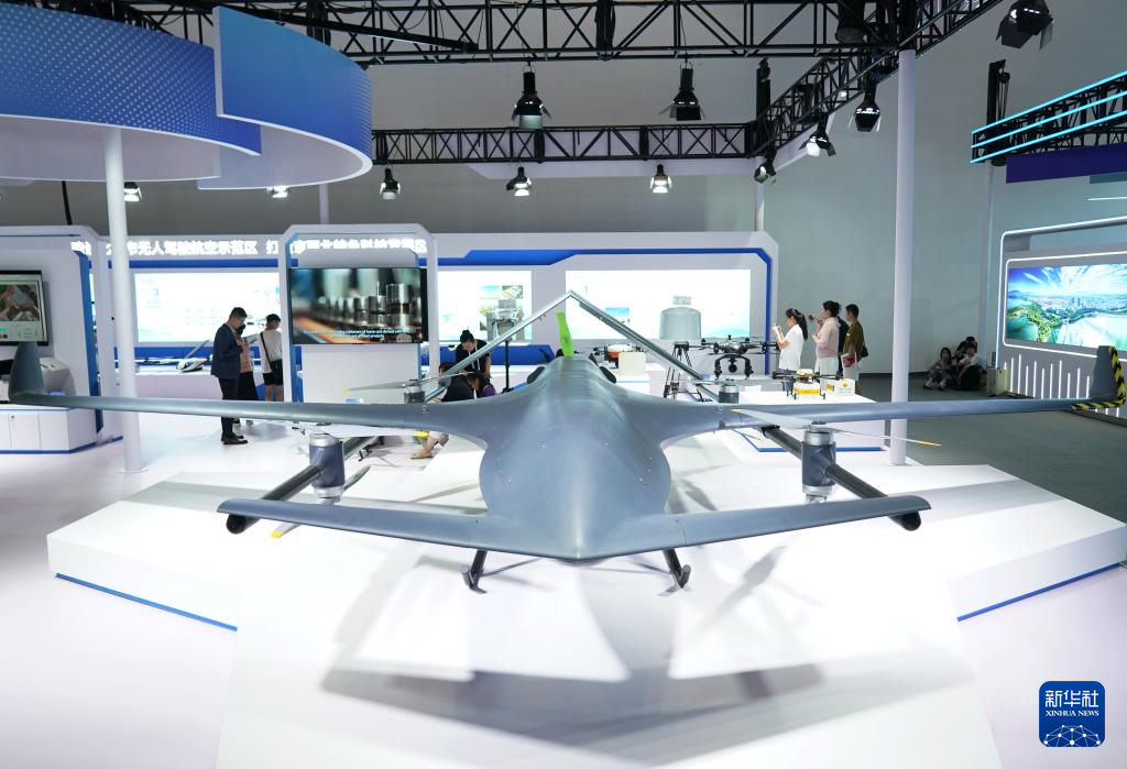 这是7月13日在北京科博会现场拍摄的一款垂直起降无人机。