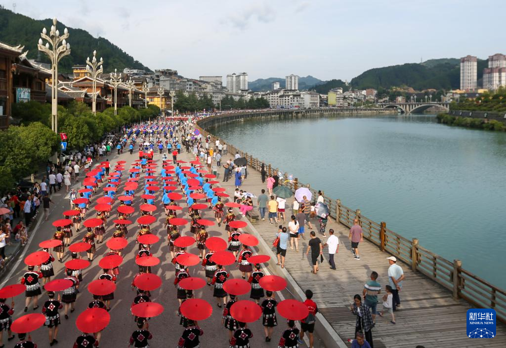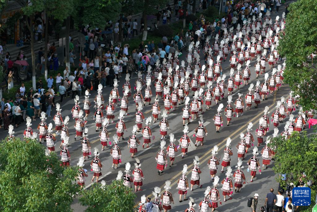 7月13日拍摄的贵州剑河仰阿莎文化节民族文化巡演。
