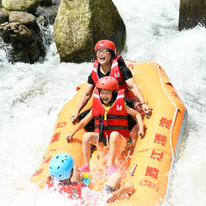 7月14日,游客在湖南省常宁市塔山瑶族乡西江漂流景区漂流。