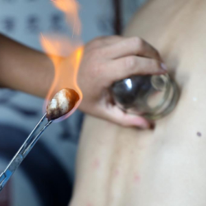 7月15日,在山东省滨州市博兴县中医医院,医务人员给一名患者拔罐。