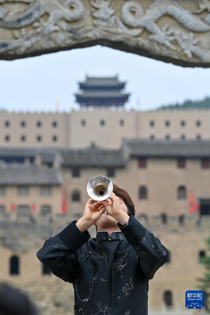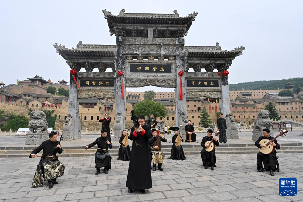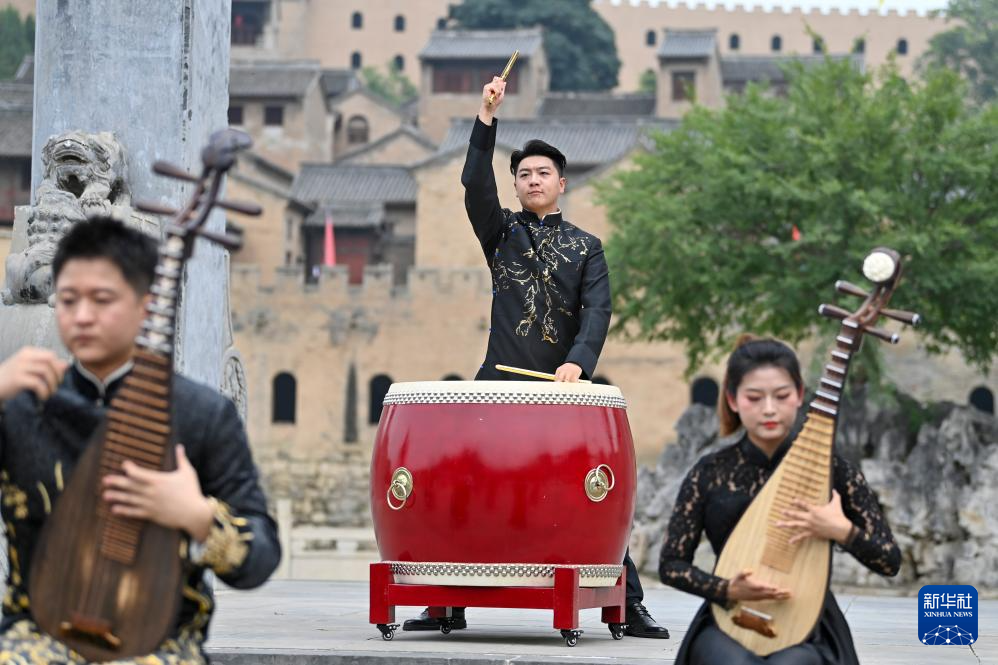 演员在湘峪古堡进行民乐表演(7月9日摄)。