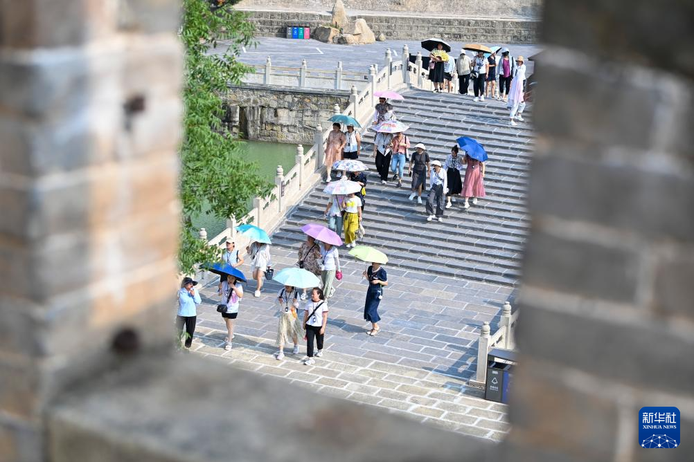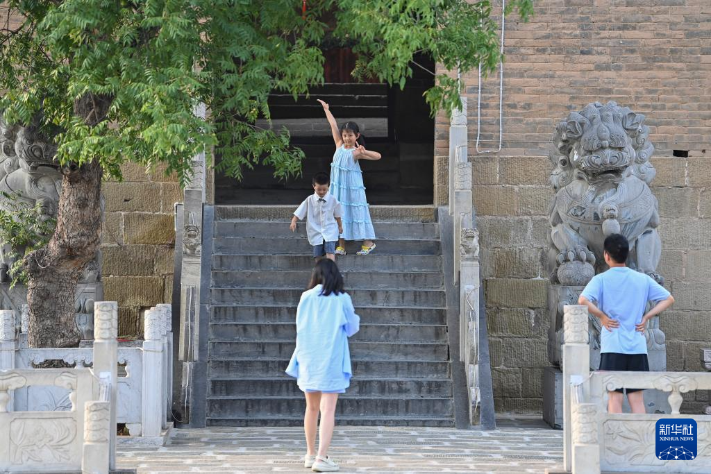 游客在湘峪古堡拍照(7月11日摄)。