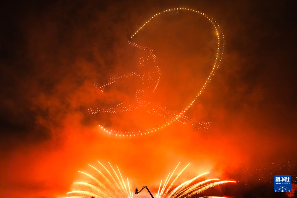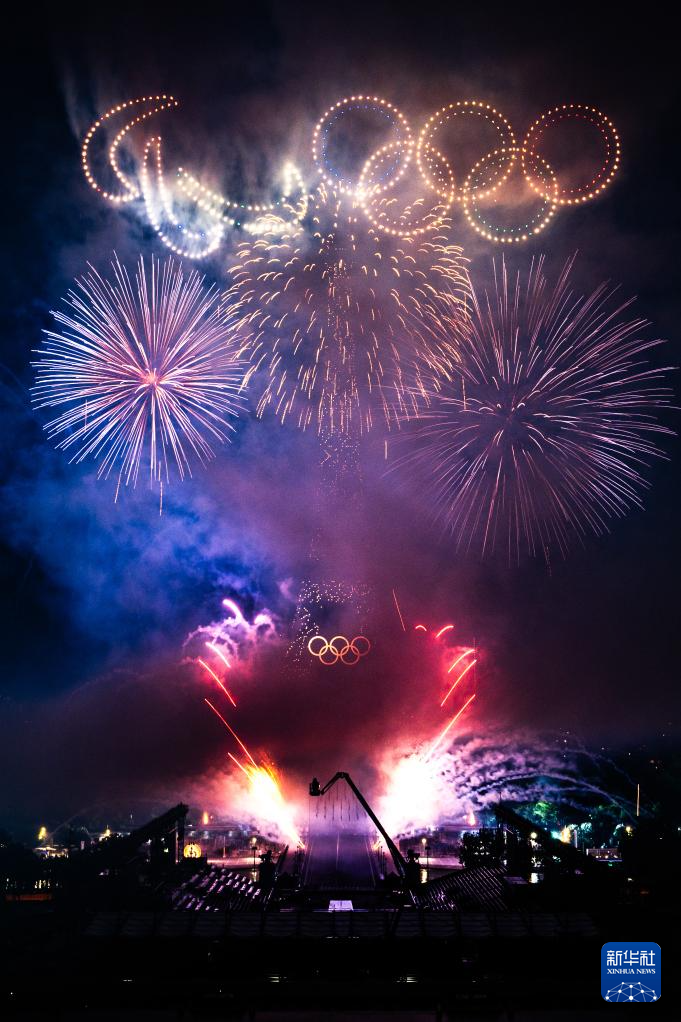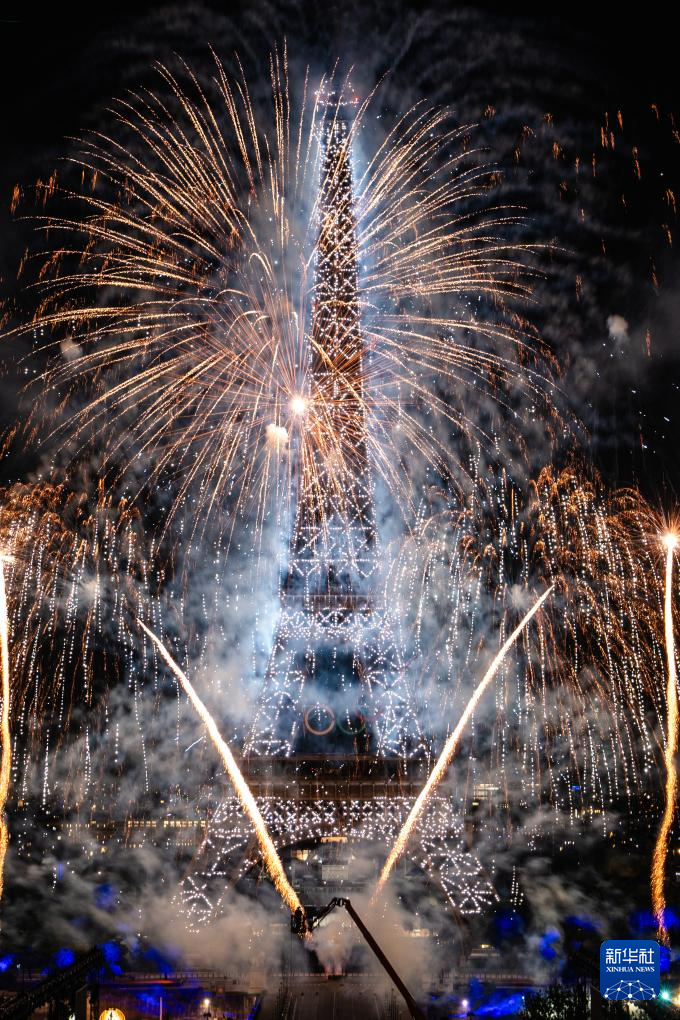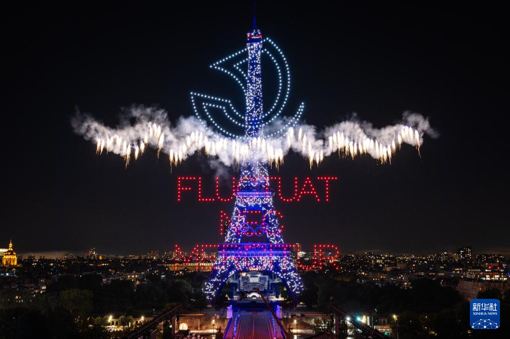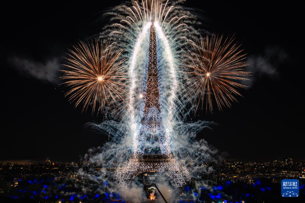 7月14日是法国国庆节。奥运元素在国庆节光影焰火秀中精彩亮相。