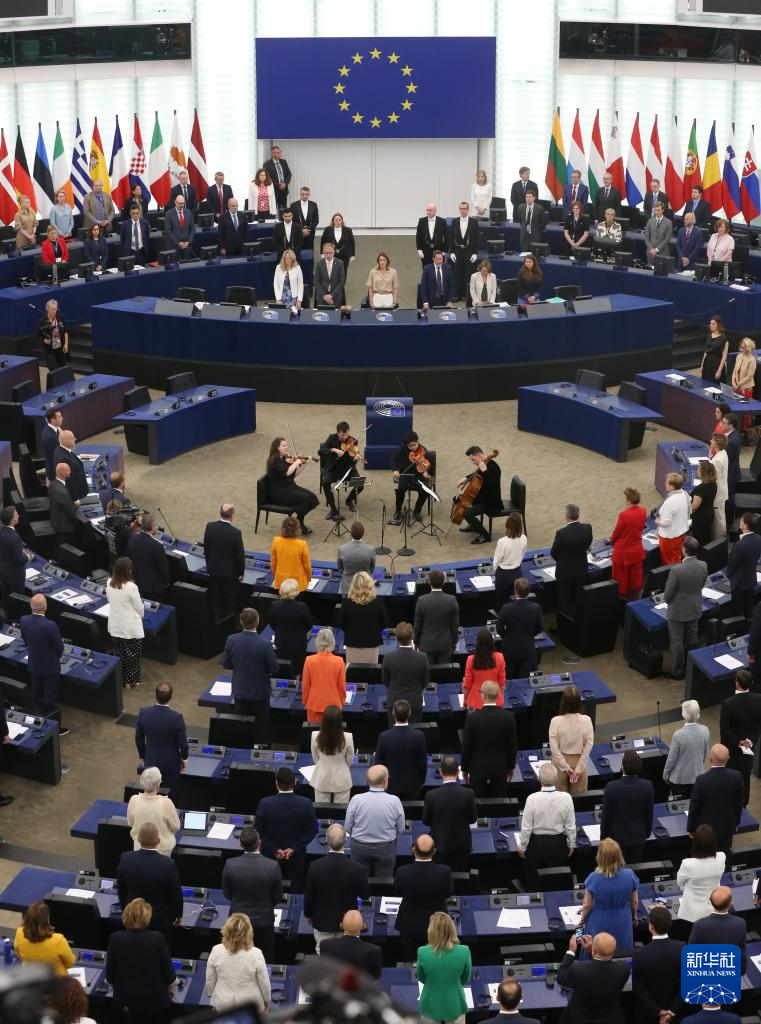这是7月16日在法国斯特拉斯堡拍摄的新一届欧洲议会第一次全体会议现场。