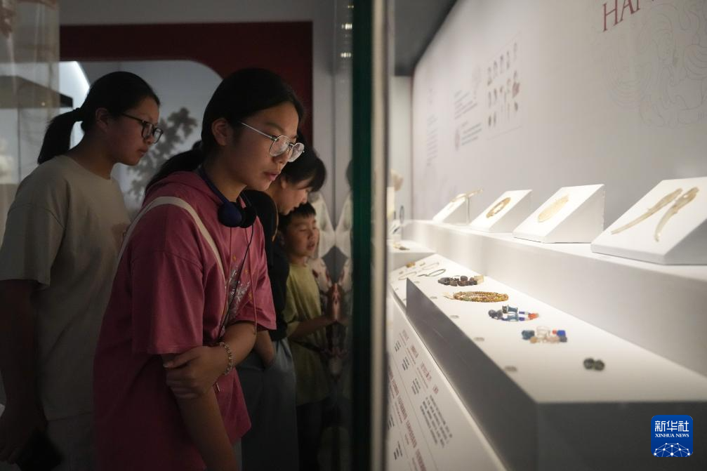 7月16日,观众在湖南博物院“彼美人兮——两汉罗马时期女性文物展”的展品旁驻足。