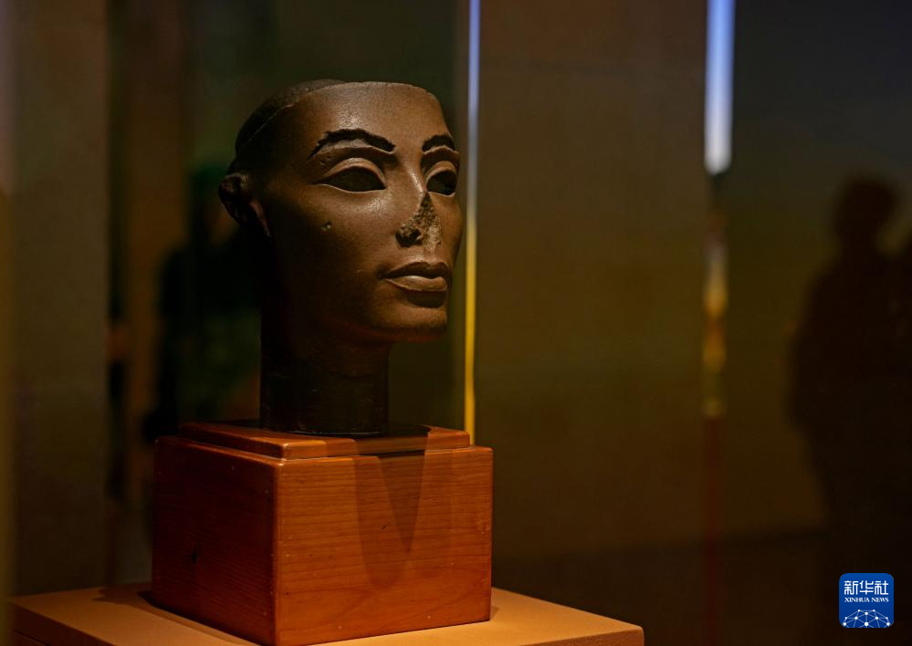 7月17日在“图坦卡蒙的时代”展区拍摄的纳芙蒂蒂头像。
