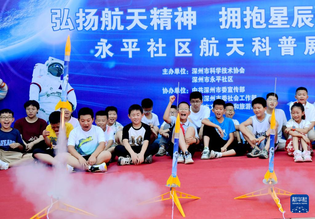 当日,河北省深州市举办航天航空科普知识进社区活动,火箭模型发射、模拟飞行、无人机等多个项目吸引了社区少年儿童参与体验,孩子们在互动中感知科技魅力,拓宽学习视野,丰富暑假生活。