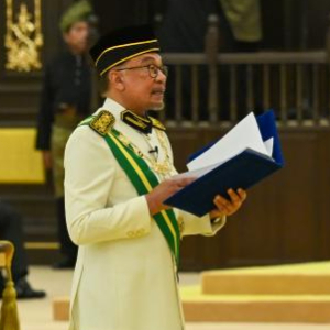 7月20日,马来西亚总理安瓦尔(右)在吉隆坡出席最高元首登基仪式。