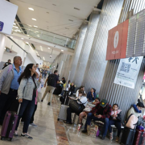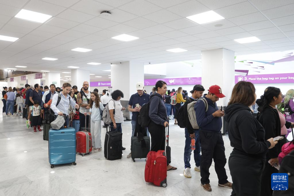 7月19日,在墨西哥首都墨西哥城的贝尼托·华雷斯国际机场,许多航班被延误或取消,大量旅客在机场等待。