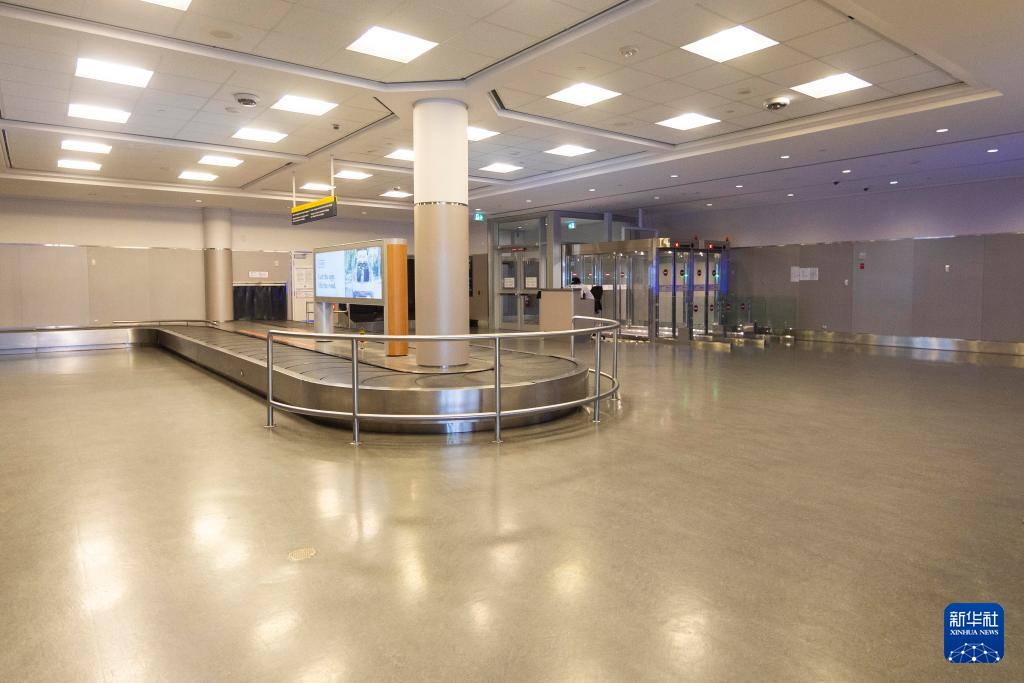 这是7月19日在加拿大多伦多比利·毕晓普机场拍摄的没有乘客的到达大厅。