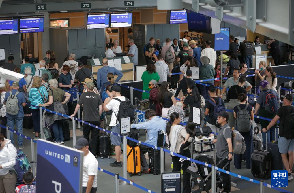 7月19日,乘客在美国密尔沃基国际机场排队办理手续。