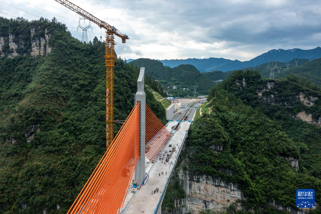 近日,由中国铁建承建的渝湘复线高速关键控制性工程——磨寨乌江特大桥全面进入桥面施工阶段。