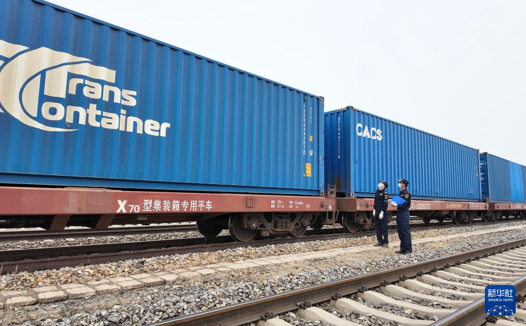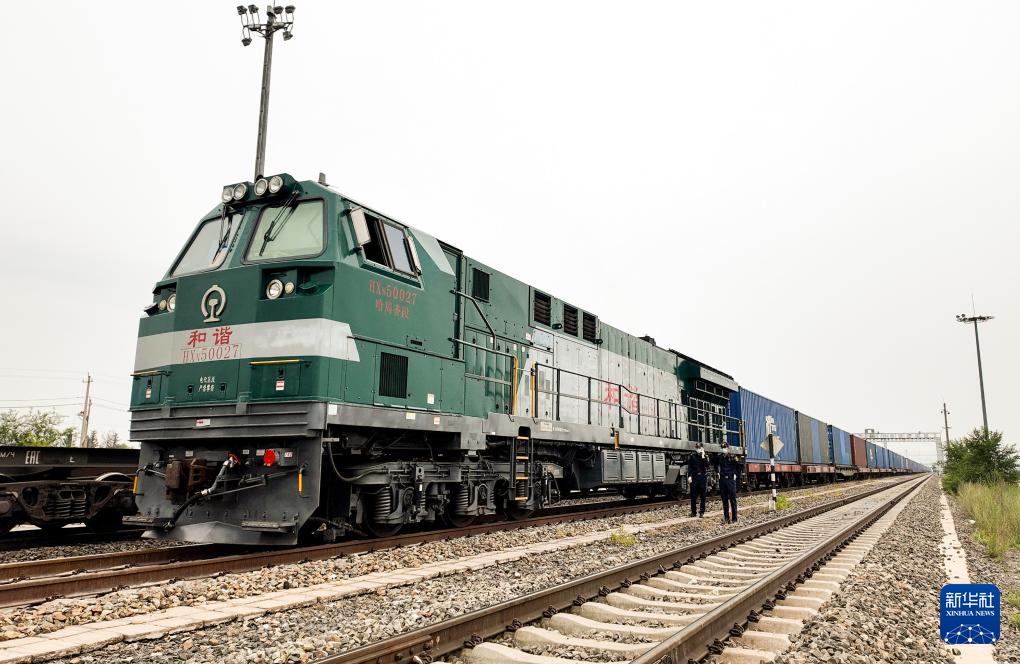一列中欧班列货运列车由内蒙古满洲里铁路口岸出发(7月17日摄)。