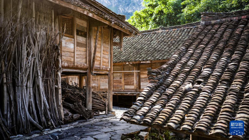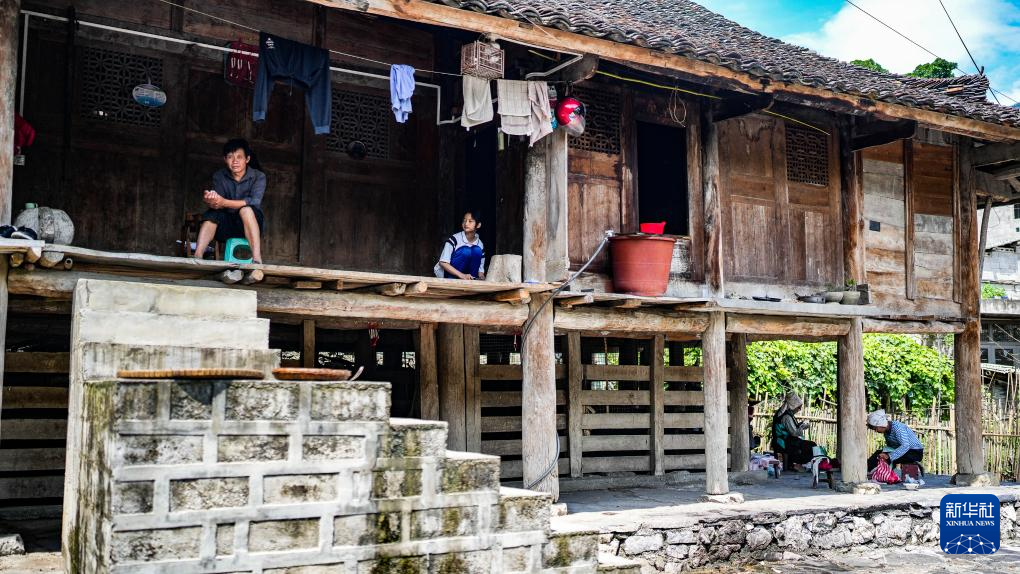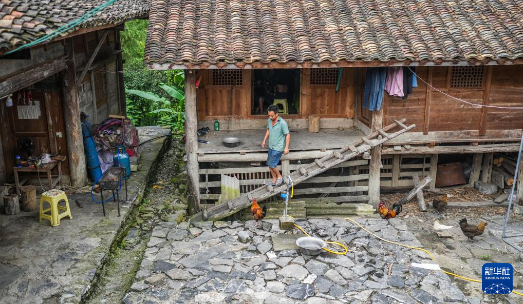 天门村村民在吊脚楼生产生活(7月16日摄)。