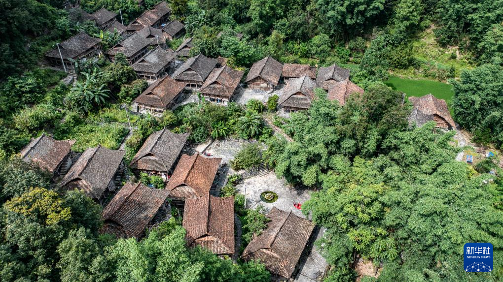 天门村小寨组的吊脚楼群一隅(7月17日摄,无人机照片)。