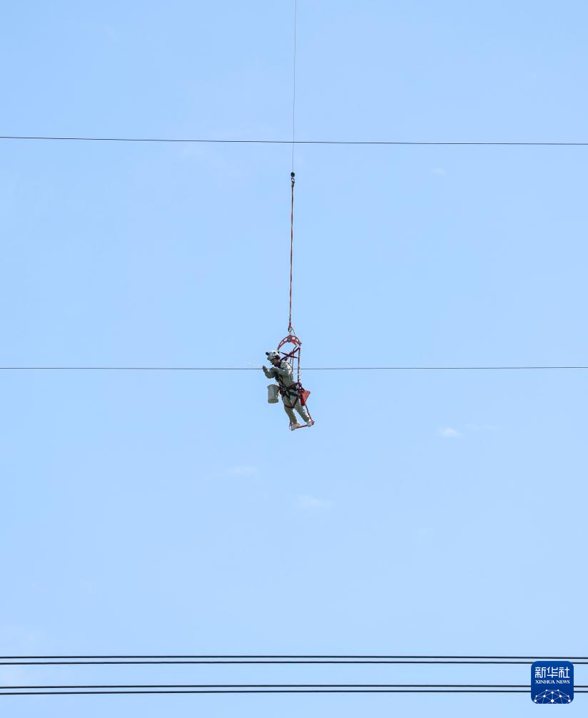 当日,国家电网采用直升机带电作业方式,对线路全长1000多公里的超特高压线路±500千伏宜华线、葛南线进行线路检修,保障三峡电力外送和西电东送重要输电通道平稳运行。