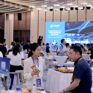 7月24日,展商与客商在展前供需对接会场上交流洽谈。