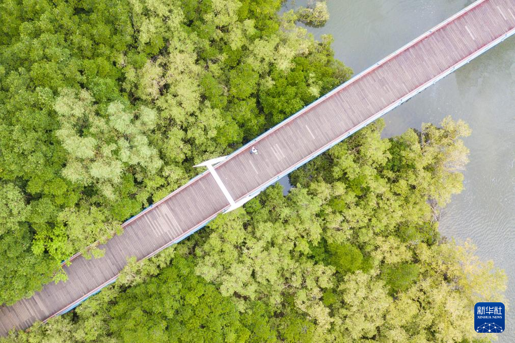 7月22日拍摄的海南省三亚市红树林生态公园景色(无人机照片)。