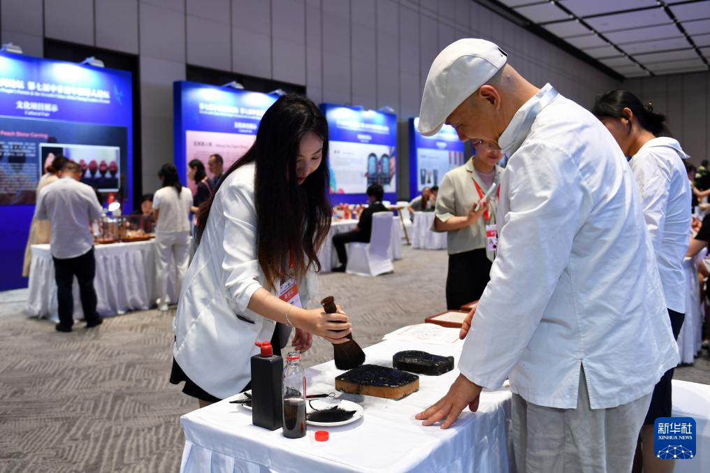 7月25日,参会嘉宾在非遗文化体验区参观。