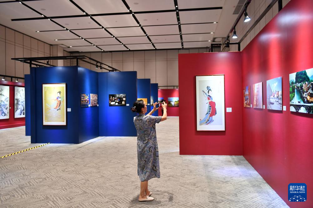 7月25日,参会嘉宾在中非文化交流展区参观。