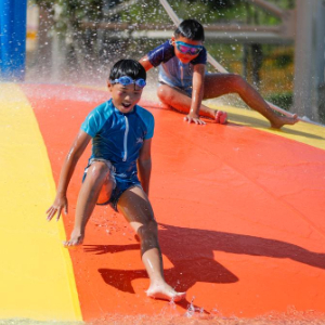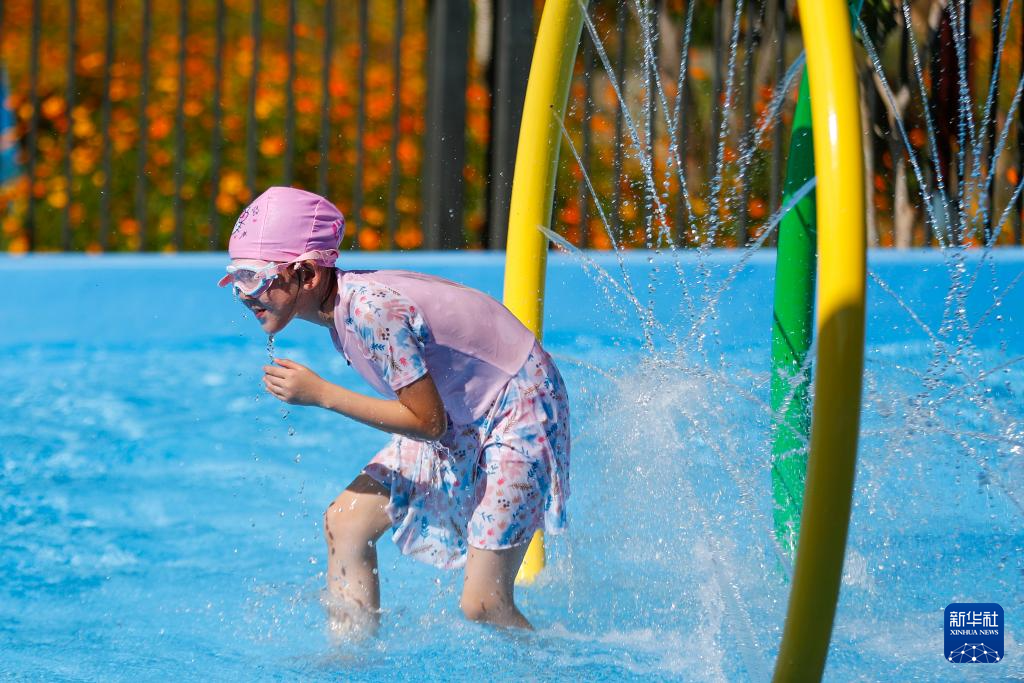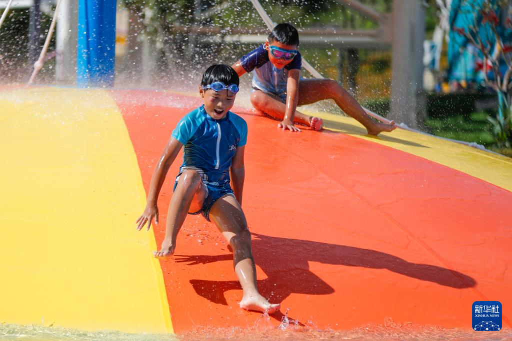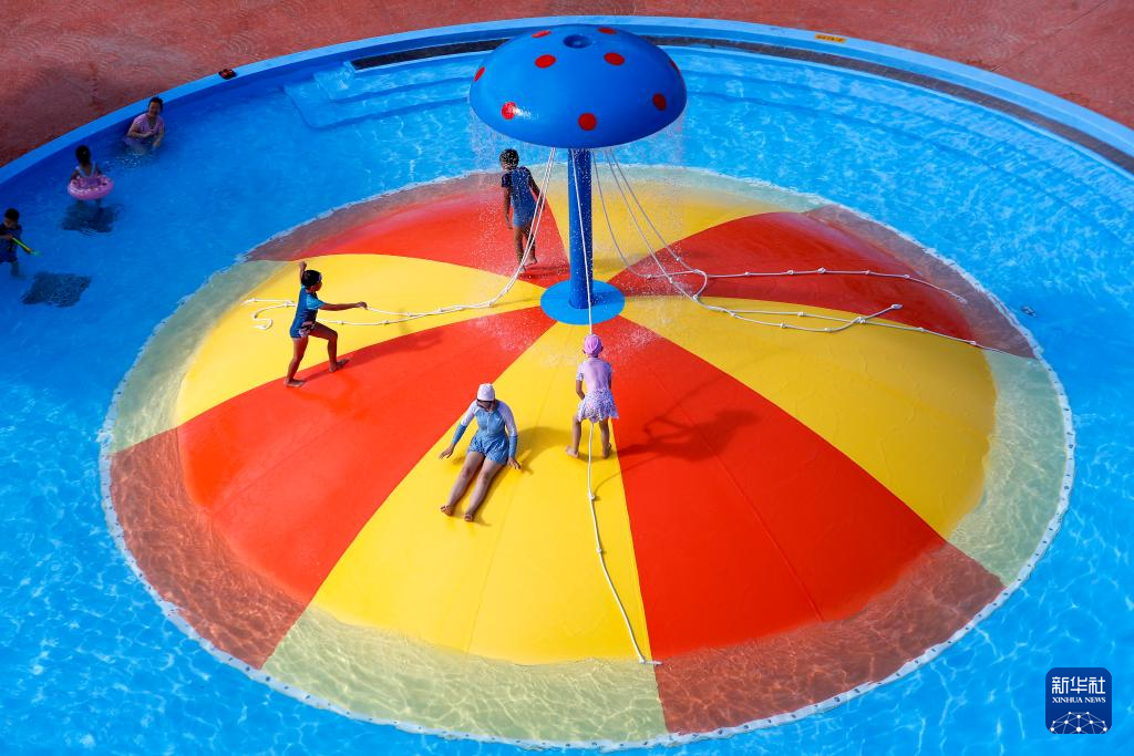 7月25日,游客在黟县西递石林水世界戏水、玩耍。