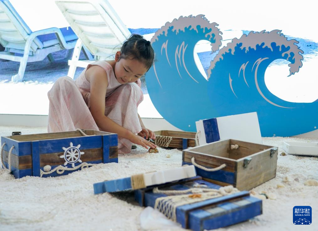 7月26日,在第八届南博会南亚馆,一名小朋友在马尔代夫展区玩耍。