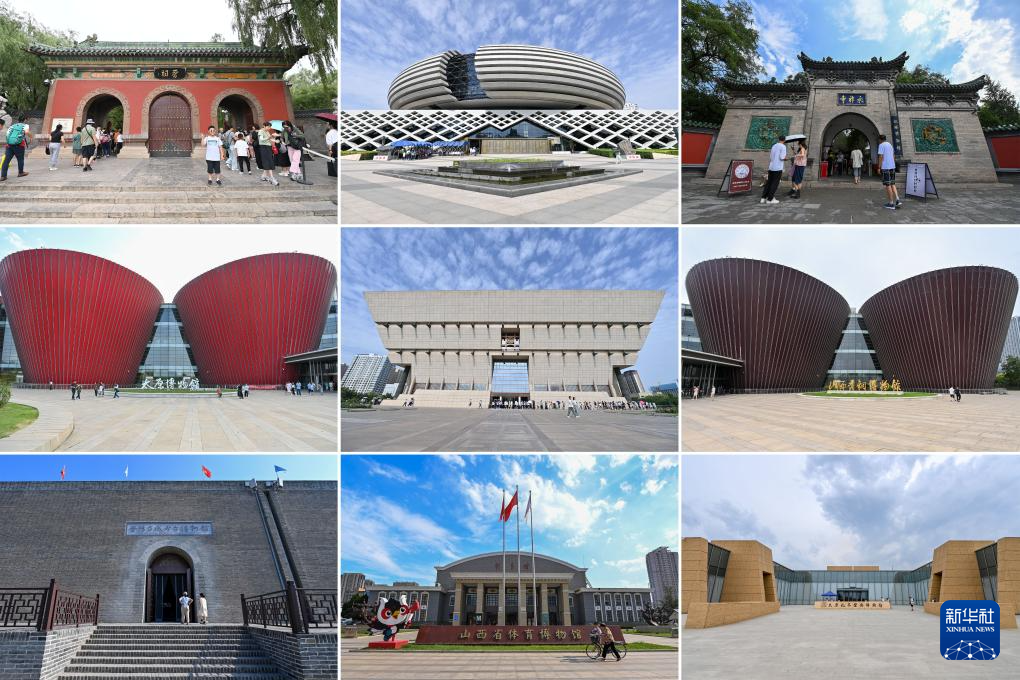 这张拼版照片是位于太原市的部分博物馆。上排从左至右:晋祠博物馆、山西自然博物馆、太原市双塔博物馆;中排从左至右:太原博物馆、山西博物院、山西青铜博物馆;下排从左至右:晋阳古城考古博物馆、山西省体育博物馆、太原北齐壁画博物馆。