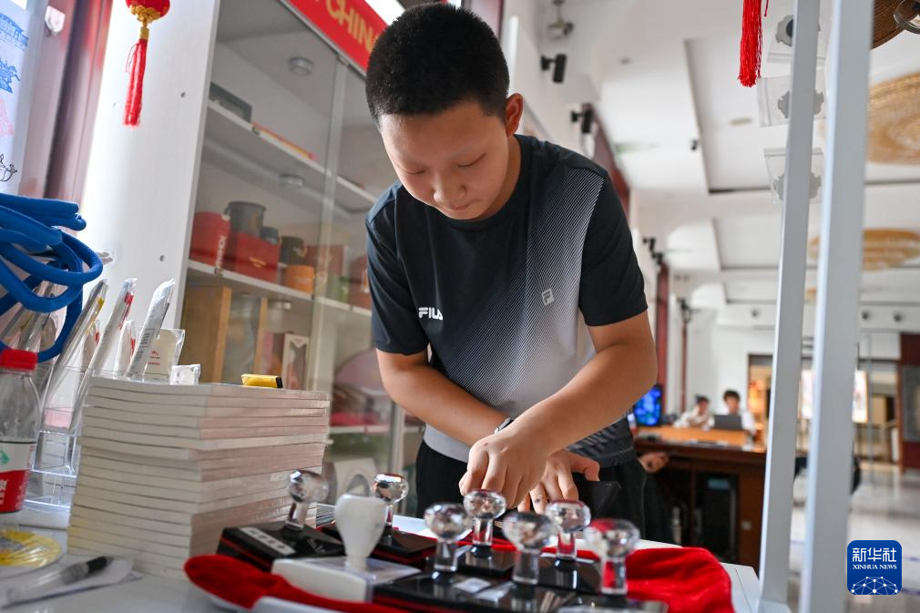 游客在山西省体育博物馆集章打卡(7月25日摄)。