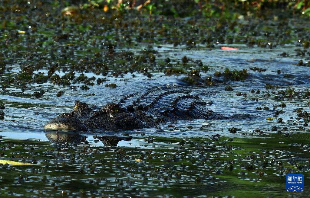 这是7月25日在斯里兰卡科特的迪亚萨鲁湿地公园拍摄的鳄鱼。