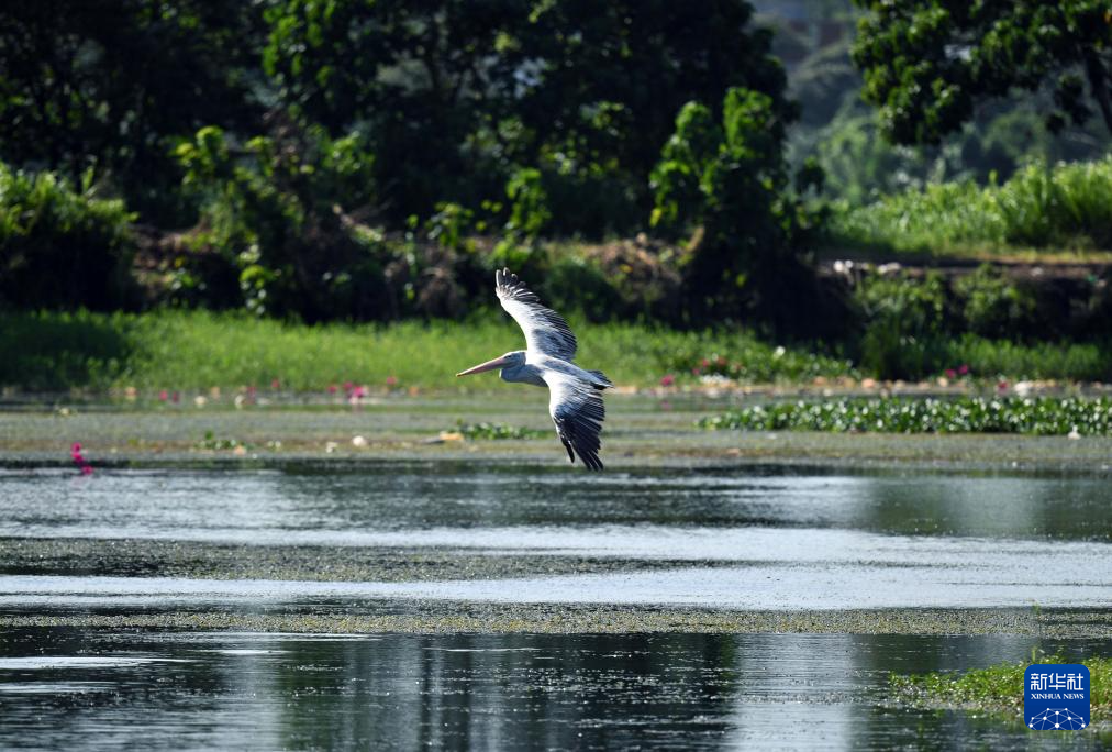 这是7月25日在斯里兰卡科特的迪亚萨鲁湿地公园拍摄的鹈鹕。