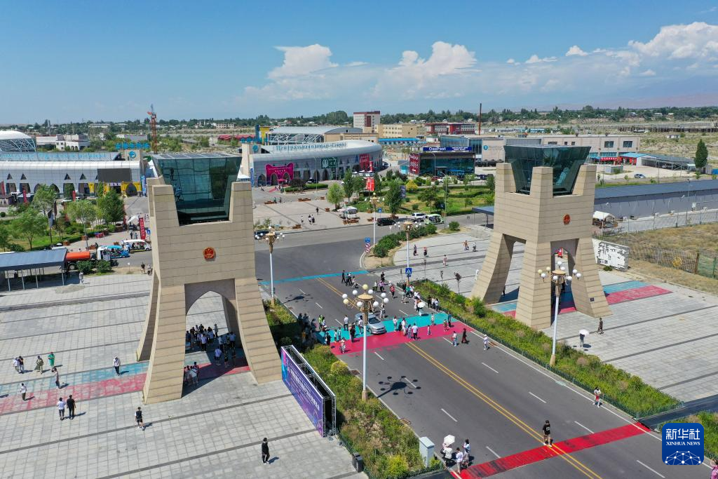 这是7月26日拍摄的中哈霍尔果斯国际边境合作中心一角(无人机照片)。