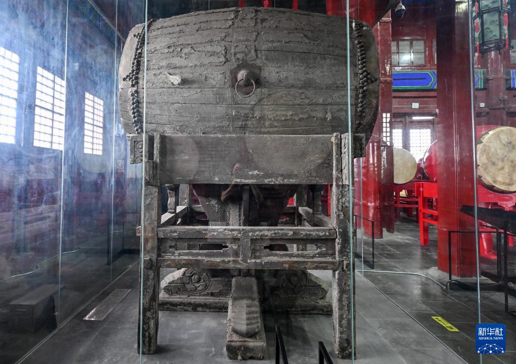 这是鼓楼上保存的更鼓(主鼓)(7月16日摄)。