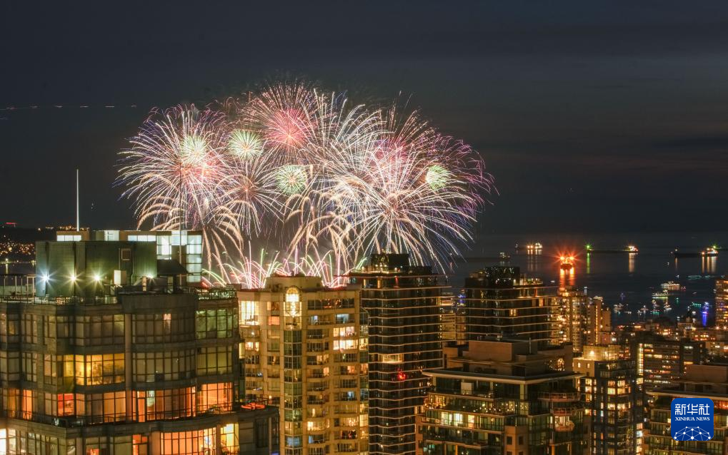 7月27日,在加拿大温哥华,烟花在英吉利湾的上空绽放。