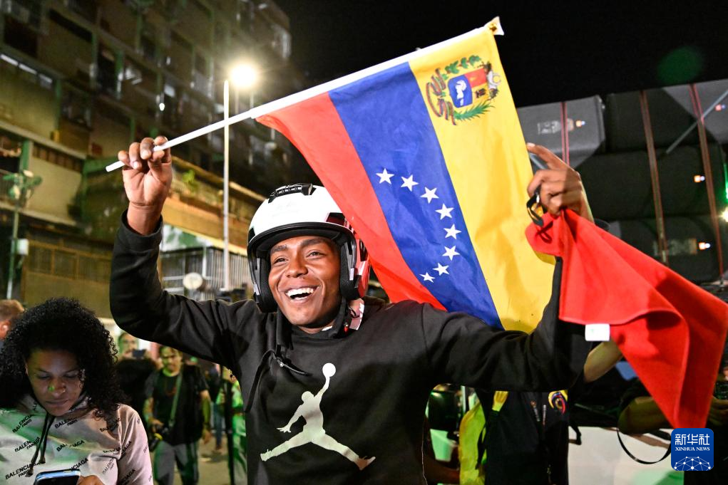 7月29日凌晨,在委内瑞拉加拉加斯,马杜罗的支持者在总统府附近庆祝。