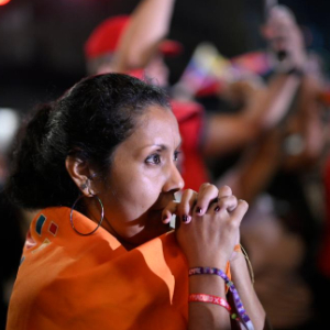 7月29日凌晨,在委内瑞拉加拉加斯,马杜罗的支持者在总统府附近等待大选结果。